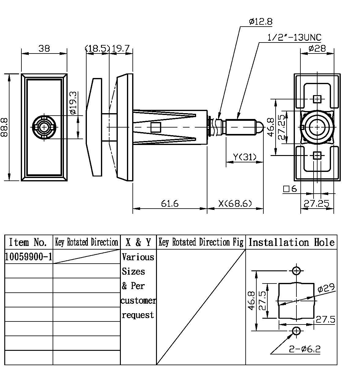 2. ABA 锁心型号如下,可与此T 型手柄配合使用,#101531、#102501、#102522、#108501...等