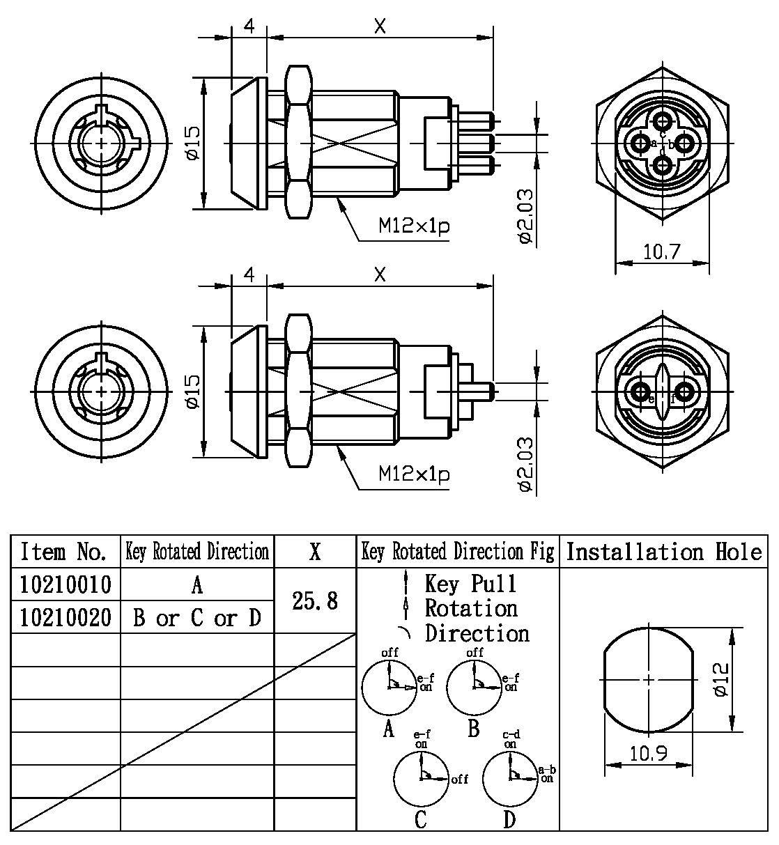1. 额定电流(电压):2A/125VAC、1A/250VAC