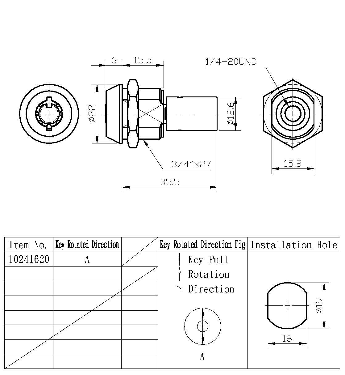 1、锁心外牙采螺帽固定、锁心内牙采螺丝固定,铜或锌合金锁壳与锁心