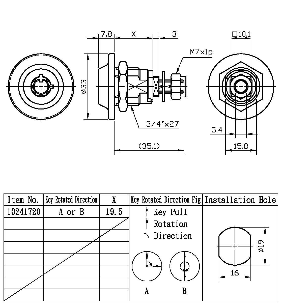 7. 锁头安装: 锁头可透过六角螺帽或专用插片来锁固,安装简单便利。