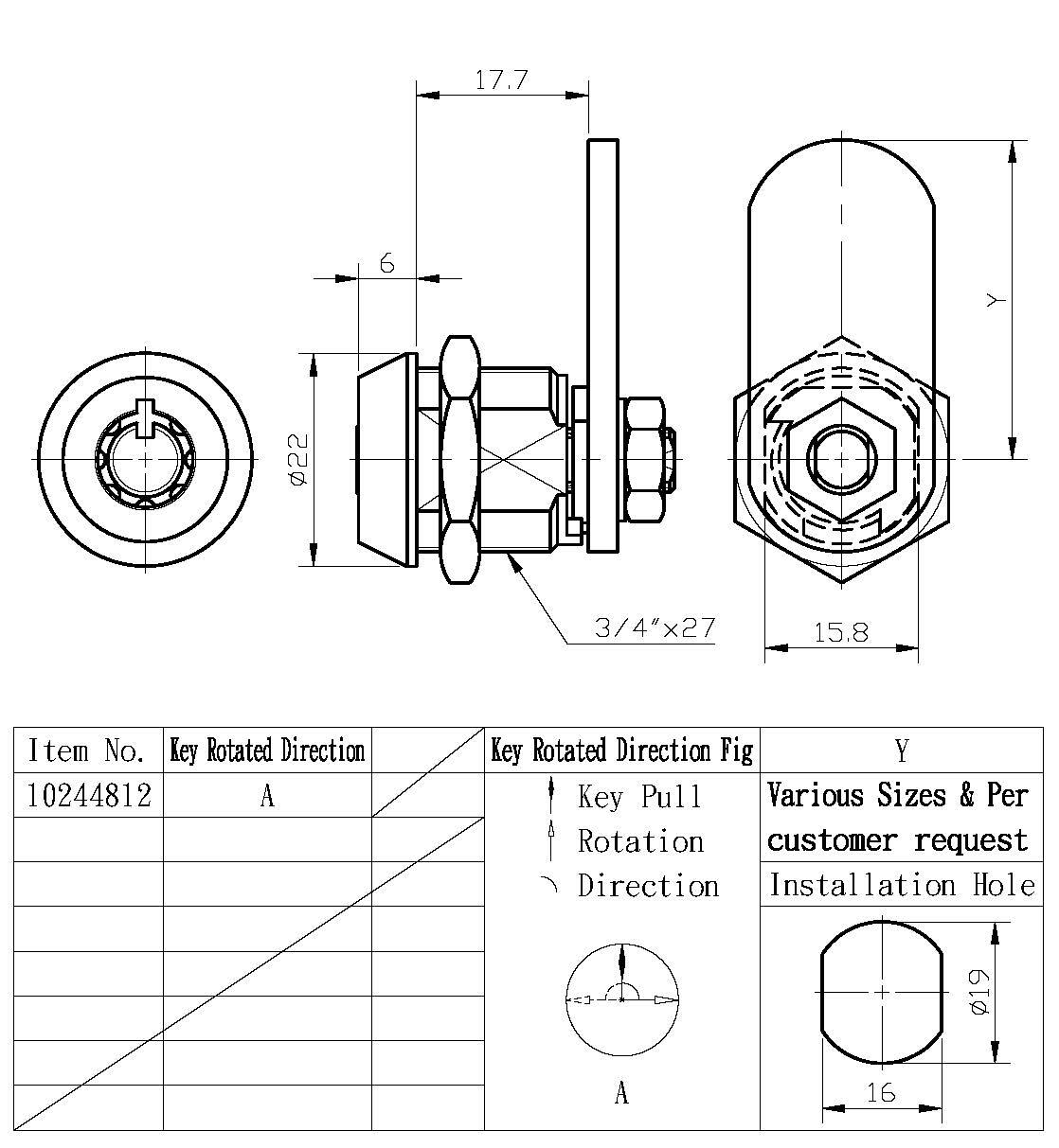 1、锁心外牙采螺帽固定、锁心内牙采螺丝固定,铜或锌合金锁壳与锁心