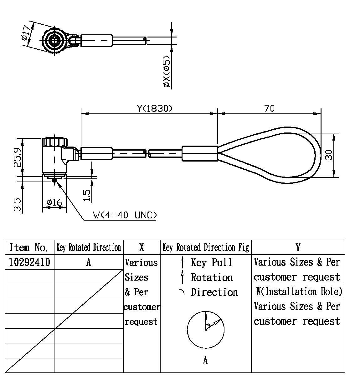 5. 配件可依客户需求设计(如:缆绳的长度、螺纹的尺寸....)