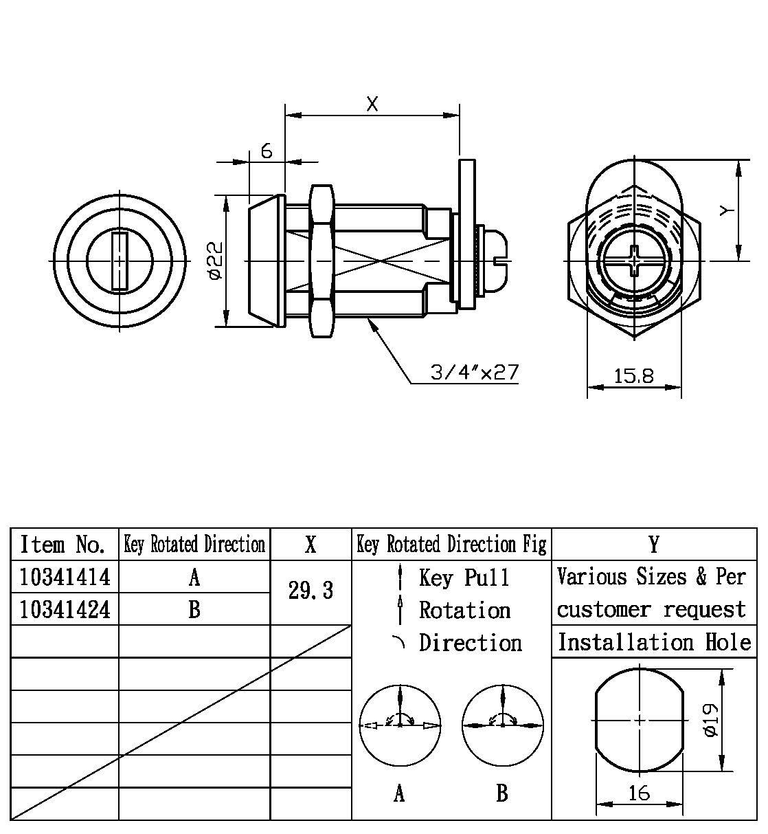 3. 适用于金属/非金属、木门、工具柜、各式箱体、抽屉、以及办公家具等用锁