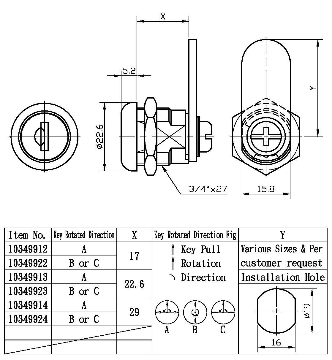 5. 适用于金属/非金属木门、各式箱体、工具柜、抽屉、橱柜及办公家具等用锁